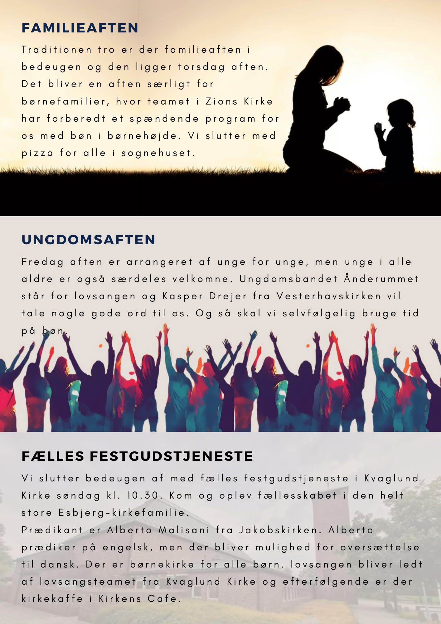 Her vil du opleve at komme ind i en stærk åndelig atmosfære, være med til at synge glade sange og lytte til udfordrende forkyndelse.